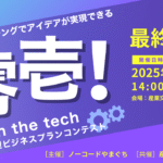 2025.12.06 / 最終更新日 : 2025.12.06 イベント共有 イベント 【最終発表会】零壱 Catch the tech!〜あなたのアイデアの実現化をノーコードエンジニアと実現する(ゼロイチキャッチザテック) 「アイデアを形に、技術支援型ビジネスコンテスト」 ノーコードやまぐち1周年記念として開催する、新しい形のビジネスプランコンテストです。 従来の賞金授与型とは異なり、選ばれたプランには半年間の技術支援を提供。 アイデア段階 […]