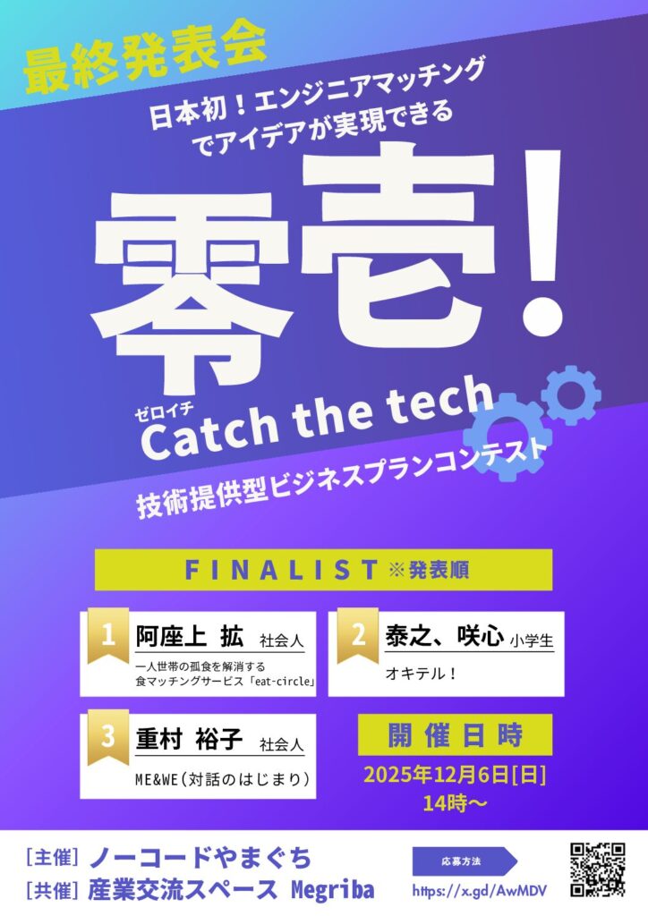 ノーコードやまぐち1周年記念として開催する、新しい形のビジネスプランコンテストです。