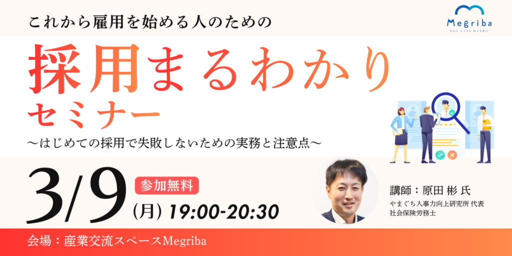 そこで今回は、やまぐち人事力向上研究所の代表であり社会保険労務士の原田 彬 氏を講師に迎え、“最初の採用”に必要な実務を、トラブル事例を交えながらわかりやすく解説します。
