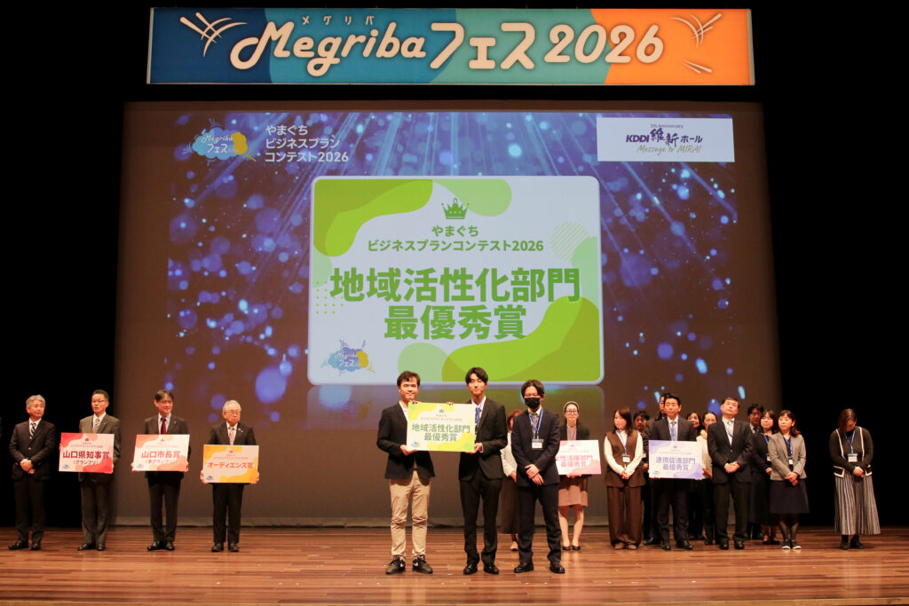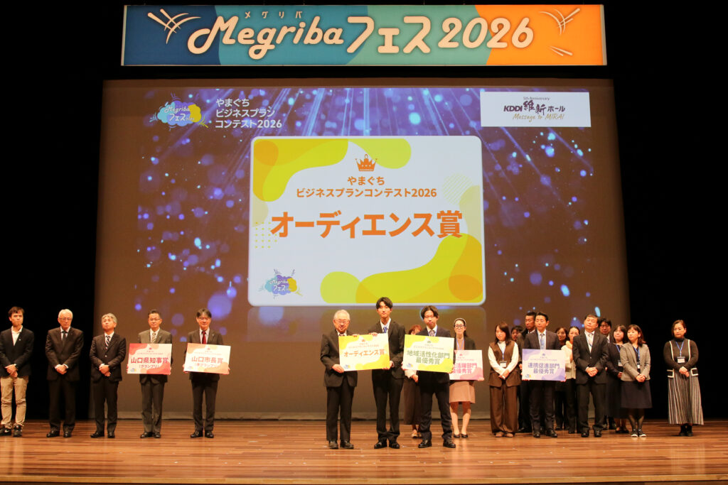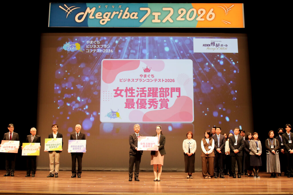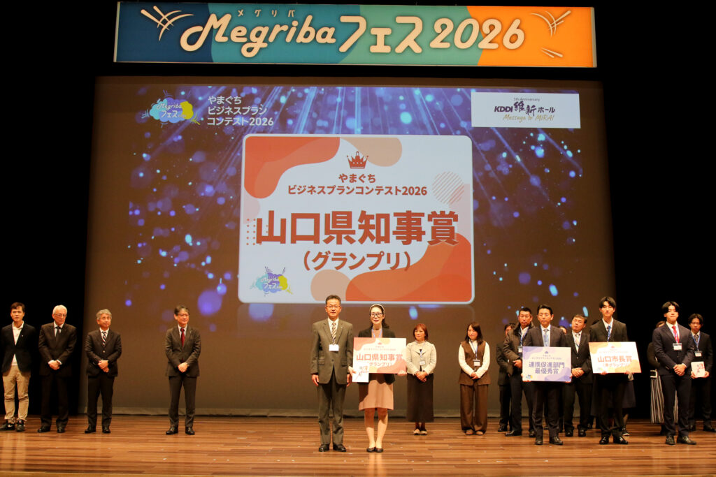 やまぐちビジネスプランコンテスト2026実行委員会では、山口県における新規事業創出と育成を目的とした「やまぐちビジネスプランコンテスト2026」を令和8年1月17日(土)、山口市KDDI維新ホールメインホールにて開催しました。