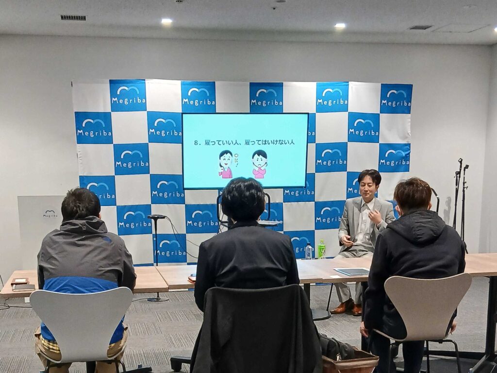 その後、「雇っていい人、雇ってはいけない人」というテーマについてお話されました。会社という組織を保持していくため、現実的かつ少しシビアな内容でしたが、非常にユーモアに富んだお話も盛り込まれ、会場からは時々笑い声が湧き上がりました☺️